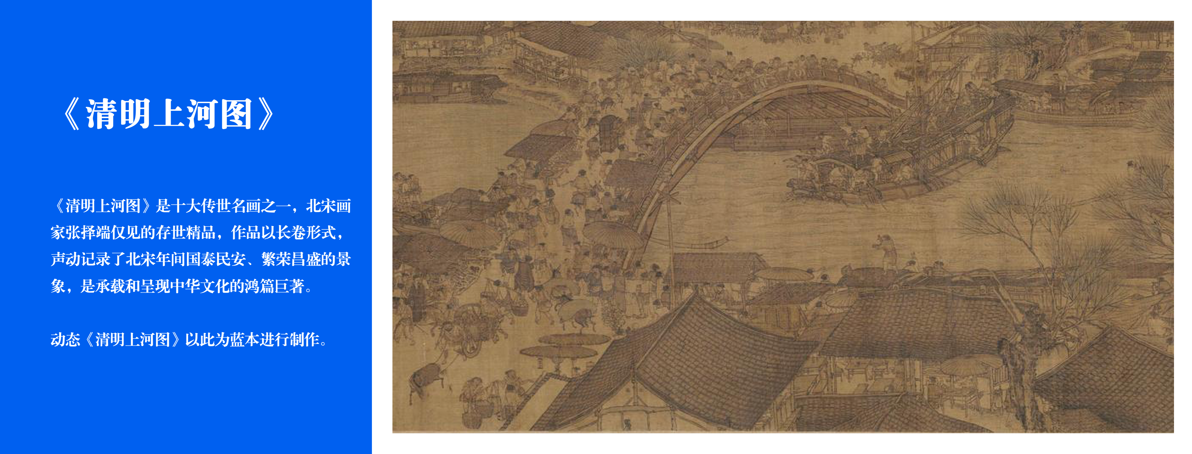 会动的《清明上河图》,,,,是2010年上海世博会中国馆的“镇馆之宝”,,,,这幅长128米高6.5米的巨幕,,,,是讲好中国故事、、、、弘扬中国文化的宏大载体,,,,是中华民族的传统文化与当代科技的完美结合。。。在世博会为期半年展览期间,,,接待了中外观众达2000万人次。。。
