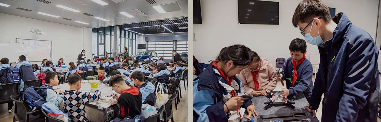 本次活动,,,,后宅小学3-6年级学生走进艺术设计学院、、、汽车与智能交通学院、、、、智能工程学院和大学生活动中心参与了艺术设计与创作、、汽车制造与维修、、、现代工业智能制造等工业研学活动。。